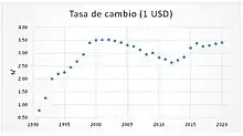 La cotización corresponde al tipo de cambio del último día de cada mes.[1] Durante finales de los años 2000, empezó a baja su cotización debido a la compra de la moneda extranjera.[2]
