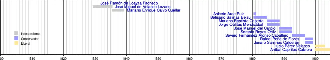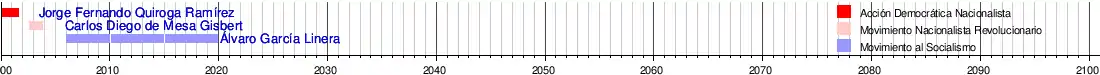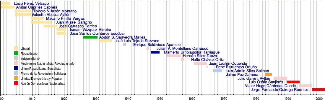 La siguiente línea temporal representa la progresión de los vicepresidentes de Bolivia y su afiliación política al momento de asumir el mando constitucional: