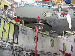 Eje del ala de geometría variable de un Tornado durante una operación de mantenimiento.