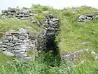Hirta | «Estructuras corniformes» en Gleann Mòr,[nb 10] incluyendo la «casa de la amazona». Nada como ellas existe en ningún otro lugar del Reino Unido o Europa y su uso original es desconocido. Es posible que sean pictas y daten entre 400 y 900 A. D., aunque pudieran ser más antiguas. | (P)[132][133] | ![]() |