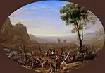 Paisaje con Ascanio asaeteando el ciervo de Silvia | 1682 | Óleo sobre lienzo | 120 x 150 cm | Ashmolean Museum, Oxford | Encargo del príncipe Lorenzo Onofrio Colonna.[60] El cuadro está firmado CLAVDIO. I, V, F, A ROMAE 1682 Come. Ascanio saetta il. Cervo di Silvia figliuola di. Tirro lib. 7 Vig.. Más abajo hay otra firma cubierta parcialmente por el marco: CLAVDIO ROM. Pendant con Vista de Cartago con Dido, Eneas y el séquito de ambos saliendo de caza (1676). Esta no obra figura en el Liber Veritatis probablemente porque murió antes de consignarlo.[72] | |