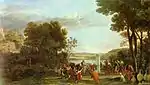 Paisaje con Céfalo y Procris reunidos por Diana | 1630-1635 | Óleo sobre lienzo | 136 x 172 cm | Staatliche Museen, Berlín | Firmado CLAVDIO ROMA 16[...]. Encargo del marqués Vincenzo Giustiniani.[17] | |