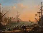 Puerto | 1637 | Óleo sobre lienzo | 74 x 99 cm | Colección duque de Northumberland, Alnwick Castle, Alnwick, Northumberland | Realizado para el papa Urbano VIII. Pendant del anterior. En 1639 realizó otra versión, Puesta de sol en un puerto (Museo del Louvre, París).[22] | 14 | |