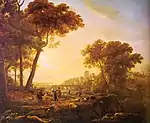 Claude Gellée, más conocido como Claude Lorrain y, en español, Claudio de Lorena (Chamagne, Lorena, entre 1600 y 1605–Roma, Estados Pontificios, 23 de noviembre de 1682), fue un pintor francés establecido en Italia. Perteneciente al período del arte Barroco, se enmarca en la corriente denominada clasicismo, dentro del cual destacó en el paisajismo.