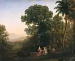 Paisaje con la huida a Egipto | 1630-1635 | Óleo sobre lienzo | 63,5 x 92,5 cm | Nostell Priory, Crofton, West Yorkshire | Firmado CGF (Claude Gellée Fecit).[18] | ||