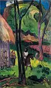 - Esta obra contiene una traducción derivada de «Llista de quadres de Paul Gauguin» de Wikipedia en catalán, publicada por sus editores bajo la Licencia de documentación libre de GNU y la Licencia Creative Commons Atribución-CompartirIgual 3.0 Unported.
