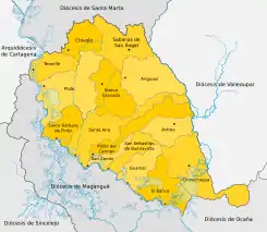 ![]() | ![]() | Diócesis de El Banco | 17 de enero de 2006 (Benedicto XVI) | Vacante | Nuestra Señora de la Candelaria (El Banco) |