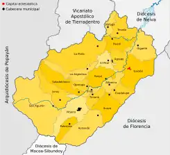 ![]() | ![]() | Diócesis de Garzón | Miguel Fernando Gonzalez [Administrador Apostólico] | Catedral de San Miguel Arcángel, Garzón (Huila) |