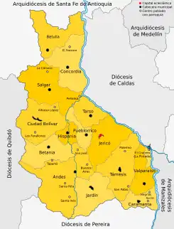 ![]() | ![]() | Diócesis de Jericó | Noel Antonio Londoño Buitrago | Nuestra Señora de las Mercedes (Jericó) |
