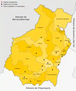 ![]() | ![]() | Diócesis de Chiquinquirá | Luis Felipe Sánchez Aponte | Catedral del Sagrado Corazón de Jesús de Chiquinquirá |