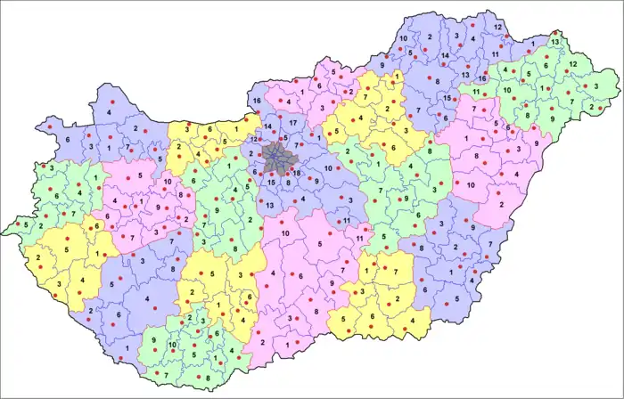 - übersichtliche Karte aller ungarischen Kreise ab 2013