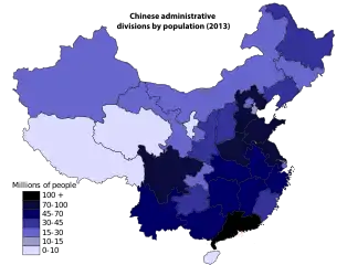 Esta es una lista de las divisiones administrativas chinas en orden de su población total residente. Incluye todas las provincias, regiones autónomas, municipios de control directo y regiones administrativas especiales controladas por la República de China (1912-1949) o la República Popular China (1949-actualidad).