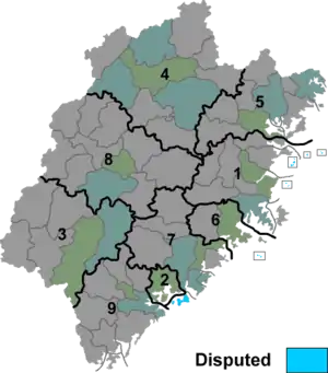 8 | Sanming | 三明市 | Sānmíng Shì | Ciudad-prefectura | |