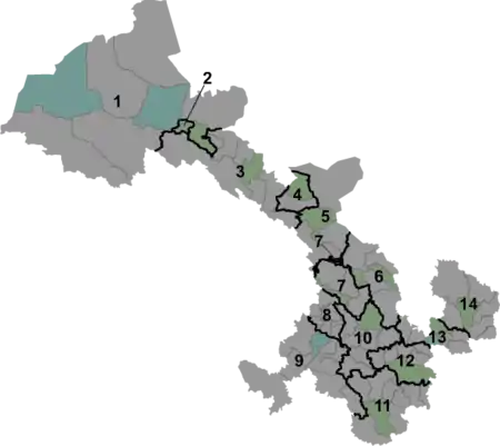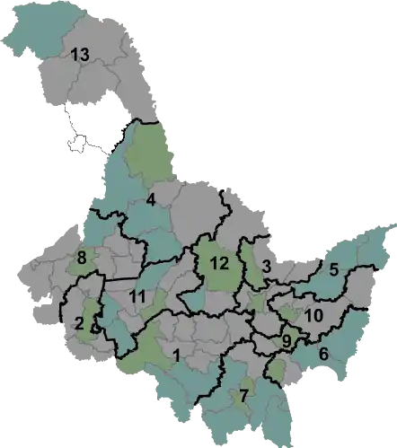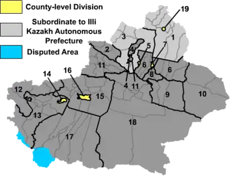 Map | # | Name | Hanzi | Hanyu pinyin | Uyghur | Uyghur Latin | Typo |