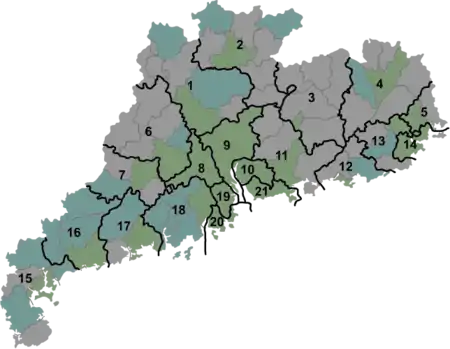 7 | Yunfu | 云浮市 | Yúnfú Shì | Ciudad-prefectura | |
