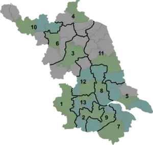 14 | Suzhou | 宿州市 | Sùzhōu Shì | Provincia de Anhui | Ciudad-prefectura | |