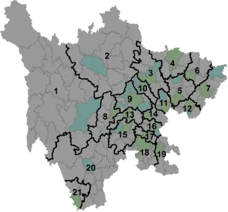 9 | Prefectura autónoma tibetana de Gannan | 甘南藏族自治州 | Gānnán Zāngzú Zìzhìzhōu | Prefectura autónoma | |