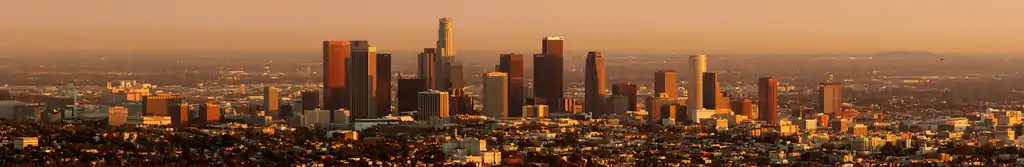 Los rascacielos modernos son difíciles de construir en Los Ángeles debido a terremotos. La ciudad está ubicada cerca de la falla de San Andreas, así como a la dificultad resultante de cumplir con los rigurosos estándares de ingeniería. Aun, varios rascacielos atraviesan la ciudad. Los Ángeles no tiene un centro tradicional, pero varios distritos comerciales y financieros que son conectados por bulevares extensos. Sin embargo, varios rascacielos exitosos e icónicos salpican el horizonte de Los Ángeles desde el Centro de Los Ángeles, a Koreatown a lo largo del bulevar Wilshire. Las zonas de Miracle Mile, Century City, Westwood y Santa Mónica en el bulevar Santa Mónica tienen aglomeración de torres. La zona hotelera del aeropuerto LAX, por el bulevar Century. El distrito de Hollywood y su Bulevar, igual el bulevar Sunset. También en el Valle, tiene distritos financieros como Warner Center, NoHo y Universal City. El lado oeste de Los Ángeles tiene tantos rascacielos, a menudo el distrito de Westwood y los rascacielos de Century City se confunden con ser el centro de Los Ángeles por los visitantes que llegan de LAX.