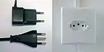 2 pines redondos. Clavija plana. Compatible con casi todas las tomas de Europa continental y varios tipos de enchufe de otros países. | 2.5 A | ![]() |