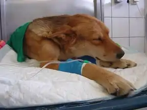 Perro en tratamiento, afectado por tripanosomiasis