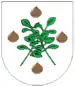 En campo de plata, dos ramas de nueces de jatropha cruzadas y cuatro castañas dispuestas en sotuer.[2] | |