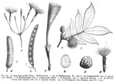 ![]() A. Inga umbellifera inflorescence B.-D. Inga semialata inflorescence, fruit, seed E. Inga cordistipula pollen F. Inga amazonica single flower G.-H. Inga barbata branch and single flower | ||
