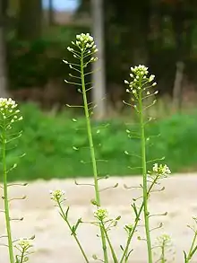 - Thlaspi campestre L. (1753) (sinónimo = Lepidium campestre (L.) R. Br.)