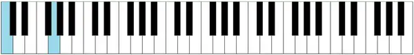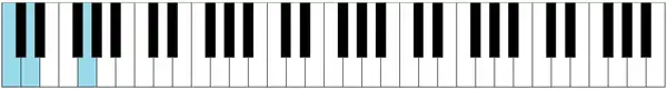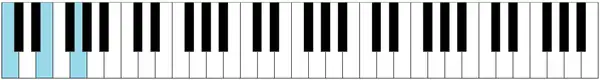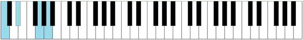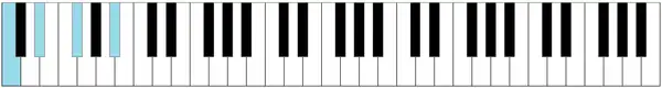 A continuación algunos de los acordes más comunes ejemplificados en un teclado con nota fundamental en Do: