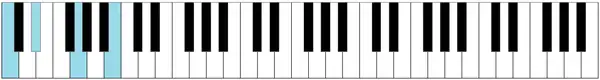 - Notas: do - mi - sol♭ - si - re♭ - fa - la (C - E - G♭ - B - D♭ - F - A).