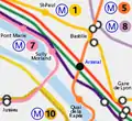 • Cluny, que había funcionado nueve años, permaneció como una estación fantasma durante casi medio siglo luego de la Segunda Guerra, hasta que en 1988 volvió a recibir trenes bajo el nombre de Cluny - La Sorbonne.[1][6]