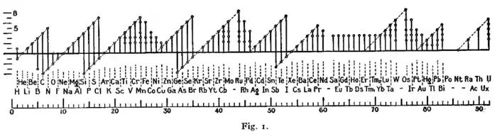 Una figura con un formato similar que la mostrada debajo fue usada por Irving Langmuir en 1919 para demostrar la regla del octeto.[26] La periodicidad de los estados de oxidación fue uno de las claves que evidenciaban la regla de Langmuir.