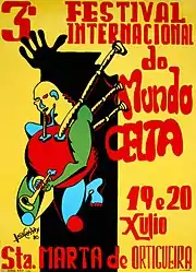El Festival de Ortigueira, conocido también como Festival Internacional del Mundo Celta o Festival Internacional do Mundo Celta (en gallego), es un festival gratuito de música folk y celta que se celebra anualmente en la villa coruñesa de Ortigueira, España. Inaugurado en 1978, no se celebró entre 1988 y 1994, por lo que la edición correspondiente al año 2022 es la número 38 del festival. A lo largo de sus 44 años de historia han pasado por sus escenarios los grupos e intérpretes más significativos de la música folk y celta, así como de la música popular y tradicional de Galicia y del noroeste de España.[1] En el año 2000 se estableció el concurso para bandas y artistas noveles denominado «Proyecto Runas», cuyo ganador obtiene un premio económico y una plaza para actuar en el escenario principal de la edición del siguiente año.