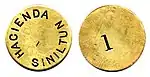 Durante el auge de las haciendas mexicanas estas emitieron su propio "dinero" ante la falta de numerario emitido por las entidades gubernamentales de todos los niveles (nacional, estatal y municipal), tales piezas monetarias se denominan "fichas de hacienda". Tales piezas eran empleadas para pagar a los trabajadores, quienes las cambiaban por bienes en las "tiendas de raya".