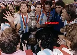 - Jugadores de Argentina con el trofeo de la Copa América.