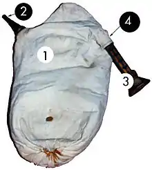 - Sac de gemecs, literalmente "saco de gemidos", es la cornamusa de Cataluña. En Andorra se denomina buna. Tiene tres roncones que cuelgan en la parte frontal del instrumento.