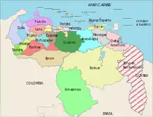 Venezuela es una república federal comprendida por 23 estados federales (que si bien poseen relativa autonomía, aún tienen mucha dependencia del gobierno central), un Distrito Capital y las Dependencias Federales. De acuerdo con la Constitución de la República, el poder ejecutivo de cada Estado recae sobre un Gobernador y su gabinete, mientras el poder legislativo recae en el Consejo Legislativo.