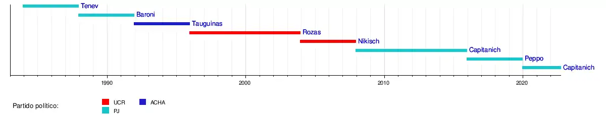 Ángel Rozas 10 de diciembre de 1995 10 de diciembre de 1999 UCR 1995 Miguel Manuel Pibernus