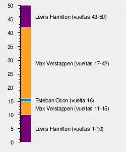 Lewis Hamilton se quedó con el triunfo. Segundo fue Max Verstappen y tercero, Valtteri Bottas.[2]