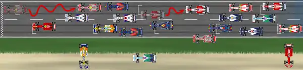• Giancarlo Fisichella tuvo que entrar a boxes en la primera vuelta para reparar los daños sufridos por una colisión en la primera curva.