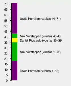 - Fernando Alonso y Stoffel Vandoorne fueron penalizados con la suma de 5 segundos por ignorar las banderas azules.[11][12]