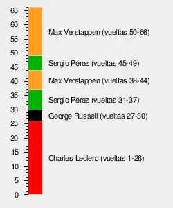Max Verstappen se llevó la victoria, completando el podio Sergio Pérez y George Russell.[3]