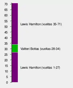 Tras 71 vueltas, Lewis Hamilton fue el vencedor tras salir desde la pole, seguido de su compañero Valtteri Bottas y Max Verstappen.[2]