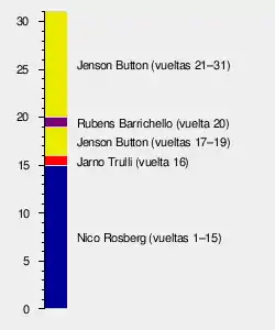 - Vuelta rápida: Jenson Button con 1:36.641 (vuelta 18). Es la primera vuelta rápida de su carrera.