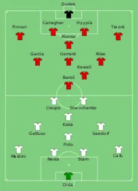 El día de la final fue el miércoles 25 de mayo del 2005 en el Estadio Olímpico Atatürk ubicado en Estambul, Turquía. El AC Milan se puso en ventaja en el primer tiempo 3-0, con goles de Paolo Maldini y dos de Hernán Crespo, pero el Liverpool no se rindió y empató el partido 3-3 con los goles de Steven Gerrard, Vladimir Šmicer y Xabi Alonso ganando por penaltis 3-2. Liverpool consiguió su quinta Liga de Campeones después de veinte años desde la última cuando le ganó a la AS Roma.[6] Ese partido fue para muchos como la mejor final de Champions vista en la historia. Tras este partido, Steven Gerrard fue elegido como el mejor jugador de la Champions de esa temporada. También ganaría la Supercopa europea en (2005) imponiéndose al CSKA Moscú por 3-1. Luego participaría ese mismo año en el Mundial de Clubes perdiendo la final frente al São Paulo.