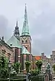 ![]() | 016 | ALE-007 | 125,42[5] | ? | Iglesia de San Jacobo | Hamburgo | ![]() | 1350 1587 ? | s. XV 1589 (aguja) 1962 | La aguja tardogótica se eliminó en 1810 y en 1827-1828 se colocó una aguja neogótica sobre el tocón de la torre, que se había reducido en un piso debido al deterioro. Esa aguja existió hasta los bombardeos de 1944. Fue reconstruida por con el diseño medieval, aunque con una aguja moderna de los arquitectos Hopp y Jäger. | |