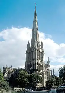 ![]() | 348= (002') | UK-16 (UK-01') | 83 (103) (159,7) | 25,0[8] | Catedral de Lincoln | Lincoln | Lincolnshire | 1185 | 1311 | Anteriormente, con 159,7 m, el edificio más alto del mundo entre 1311 y 1549, cuando la aguja se derrumbó durante una tormenta. Tuvo 103 m desde 1549 hasta 1807. Ahora tiene 83 m, y es la iglesia medieval sin torre más alta del país.[9][10] | |