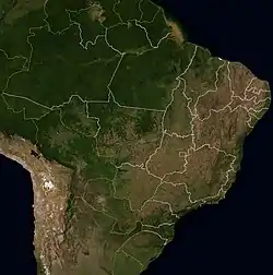 Brasil tiene costa únicamente al océano Atlántico, un tramo del litoral sudamericano en general poco recortado que va desde el cabo Orange, en el norte, hasta el arroyo Chuy, en el sur, una longitud de 7.491 km[1][2] —que aumenta hasta los 9.198 km si se consideran los salientes y entrantes costeros— que lo convierte en el 15º litoral nacional más largo del mundo. De los 26 estados brasileños nueve no tienen litoral, así como tampoco el Distrito Federal.