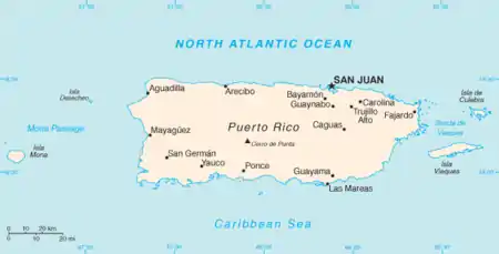 Puerto Rico tiene más de 143 islas, cayos, islotes, y atolones. Solo tres de estas islas están habitadas y son la isla principal de Puerto Rico que mide 8.710 kilómetros cuadrados, la isla de Vieques con 130 km² y la isla de Culebra con 26 km².[1]