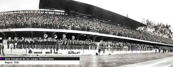 Los Juegos Bolivarianos de 1938 fueron los primeros Juegos oficiales y se desarrollaron en la Ciudad de Bogotá[1] con la participación de las seis naciones liberadas por Simón Bolívar. Se realizó en Bogotá con motivo de la celebración de los 400 años de la ciudad y en honor a que Colombia fue el que originó la idea de los juegos.