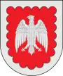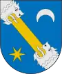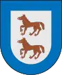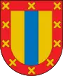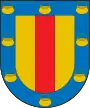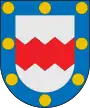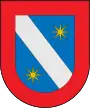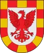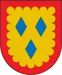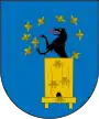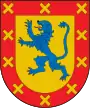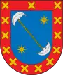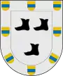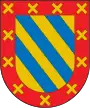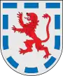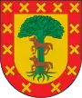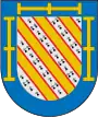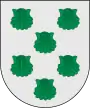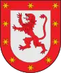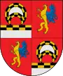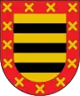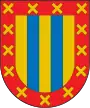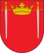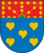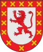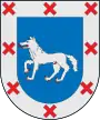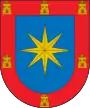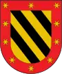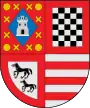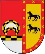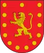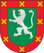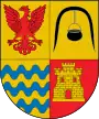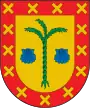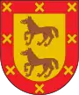 De oro, dos lobos de sable; bordura de gules con diecisiete aspas de oro. |